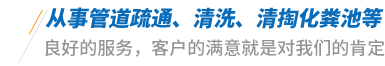 主營業務:掏化糞池、高壓清洗、管道疏通、非開挖管道、管道維修置換、移動廁所 、潛水工程、管道清淤、地漏疏通、尿堿清洗、馬桶疏通、清理隔油池、拉管頂管。